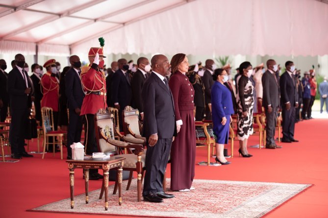La pandémie de coronavirus a eu raison du traditionnel défilé du 17-Août, fête nationale du Gabon. Une cérémonie a huis-clos a eu lieu ce lundi à l’esplanade du palais présidentiel de Libreville pour commémorer les 60 ans d’indépendance du Gabon. Voici quelques images de la cérémonie d’une vingtaine de minutes.