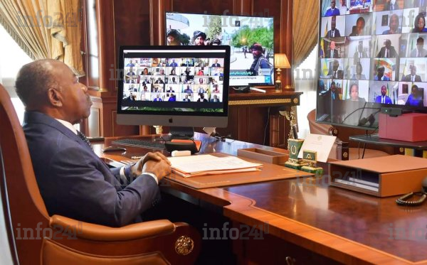 On savait Ali Bongo multilingue et multifonctions mais pas au point de s’informer totalement en arabe. C’est l’image sortie du conseil des ministres de ce 13 septembre 2021 qui nous l’enseigne. Alors qu’il est en pleine visioconférence avec ses ministres, Ali Bongo a un œil en temps réel et en langue arabe sur France24, comme le montre ce cliché officiel de la Présidence gabonaise. Une bien curieuse manière de suivre deux lièvres à la fois !