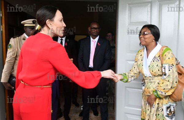 La femme d’Ali Bongo remettant symboliquement les clés d’une villa