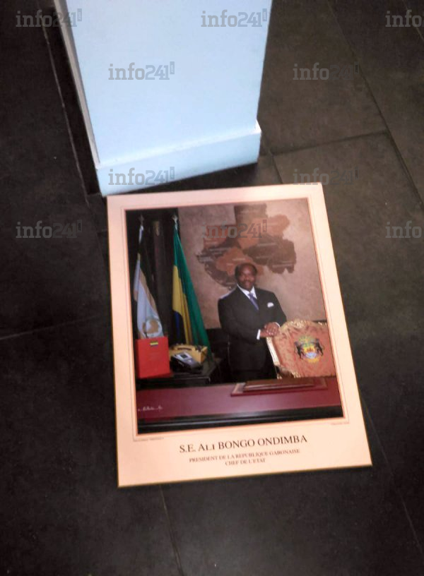 Le portrait d’Ali Bongo gisant au sol a été remplacé par celui de Jean Ping