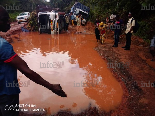 Grosse matinée de calvaire pour les usagers de la route Mitzic-Lalara (Woleu-Ntem, nord du Gabon). Suite à la forte dégradation de la route et de son manque d’entretien par les autorités gouvernementales, l’unique voie praticable des riverains a été coupée durant plusieurs heures ce 11 octobre à Mindji, une bourgade désenclavée située à 15km de Mitzic. Les images parlent d’elle-même dans un pays où le ministre des Travaux publics a été limogé et son ministère dissout le mois dernier par Ali Bongo, visiblement insatisfait devant l’absence de résultats.