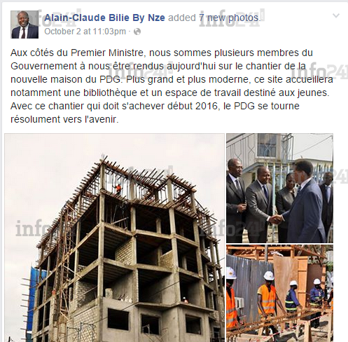 Pour le ministre de la communication, « aux côtés du Premier Ministre, nous sommes plusieurs membres du Gouvernement à nous être rendus aujourd’hui [vendredi dernier] sur le chantier de la nouvelle maison du PDG ». Alain-Claude Bilie By Nze précise bien que maladroitement que lui, le Premier Ministre et plusieurs membres du gouvernement Ona Ondo III s’y sont rendus en tant que ministres de la République. Une véritable hérésie politique ! Avant de clore son post par un euphorisant slogan témoin de ce mélange de genre : « le PDG se tourne résolument vers l’avenir ».