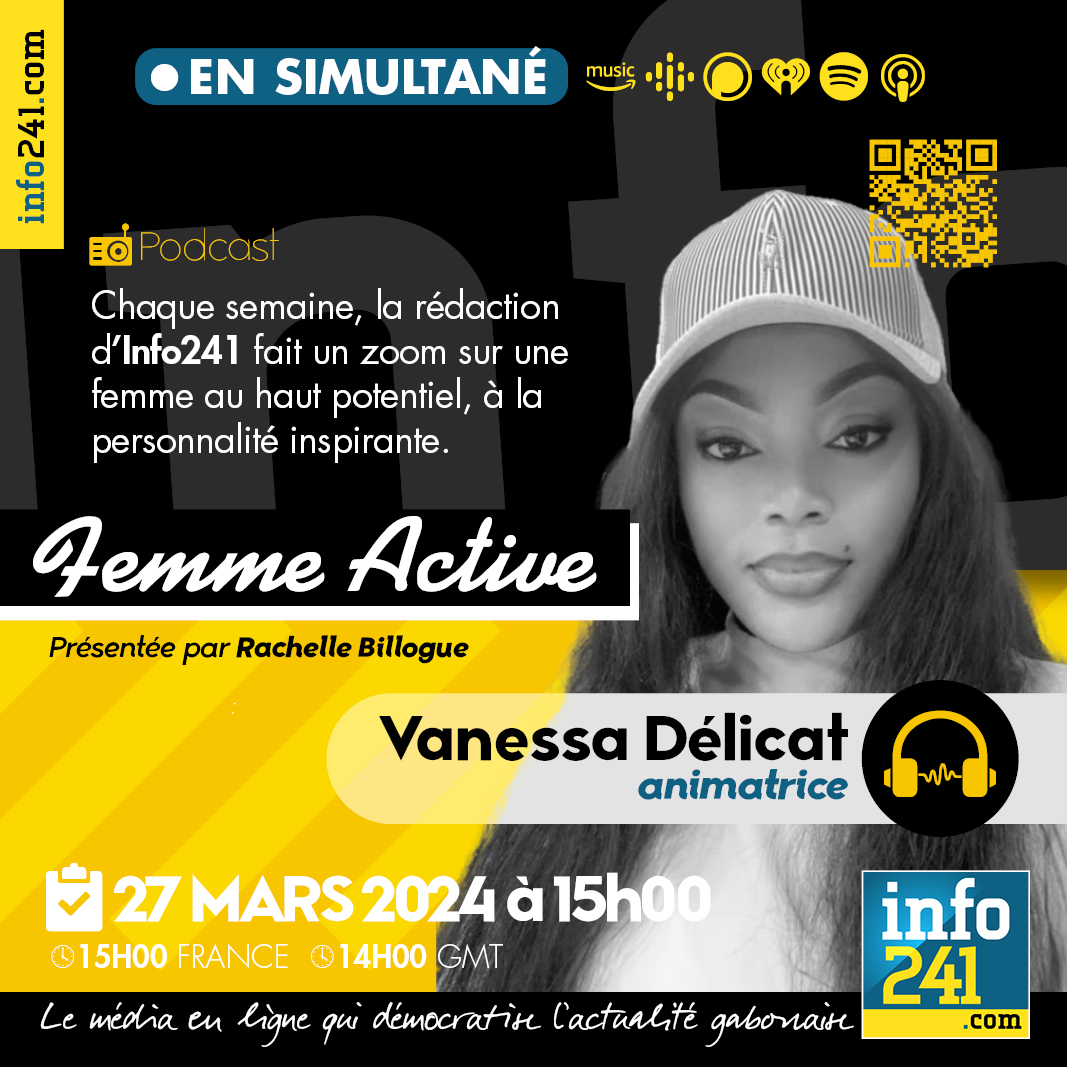 « Femme active » #10, l’émission qui fait un zoom chaque semaine sur une femme au haut potentiel et à la personnalité inspirante. Notre invitée sera Vanessa Délicat, animatrice radio et télé depuis près de 10 ans. Elle est la présentatrice vedette de l’émission Midi 1ère sur Gabon 1ère. Nous évoquerons avec elle son parcours et ses secrets de réussite.