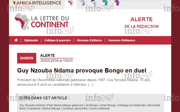 L’article avance des détails croustillants sur une démission de l’Assemblée et du Parti démocratique gabonais (PDG, au pouvoir) avant cette annonce qui ne viendra éroder la majorité présidentielle affaiblie par la filiation controversée de son candidat déclaré.