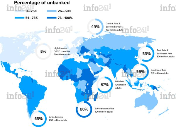 Infographie montrant le taux de non-bancarisation à travers le monde