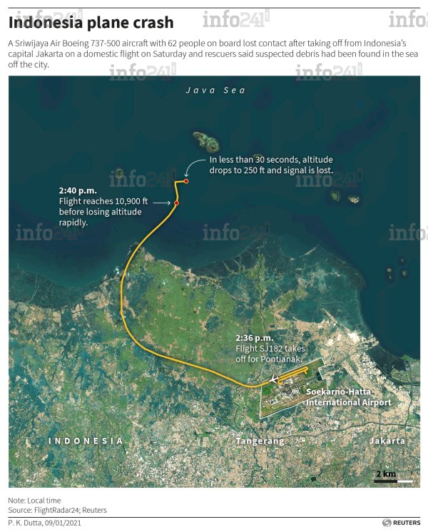 Indonésie : un Boeing s’écrase en mer avec 62 personnes à bord dont 10 enfants © 2021 D.R./Info241