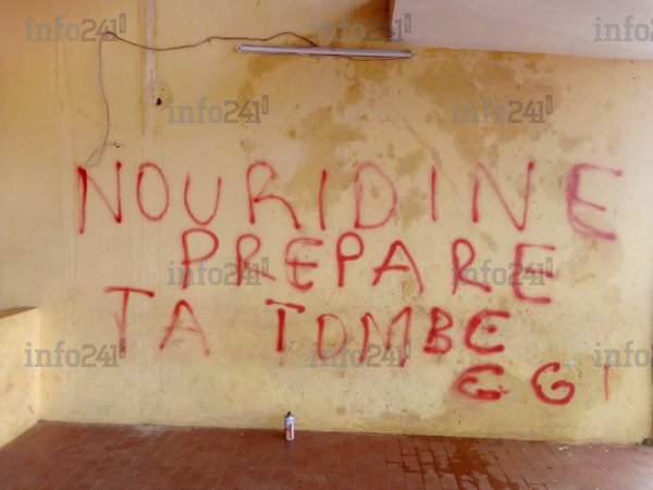 Lors de leur passage dans cette structure du parti présidentiel d’Ali Bongo, les bandits ont essayé de mettre le feu à la structure politique quelque peu à l’abandon. Avant leur départ, les visiteurs nocturnes ont laissé une inscription toute particulière à l’endroit de l’actuel du fils d’Ali Bongo, Noureddin Valentin, désormais coordonnateur des Affaires présidentielles de la présidence gabonaise : « Nouridine prépare ta tombe ».
