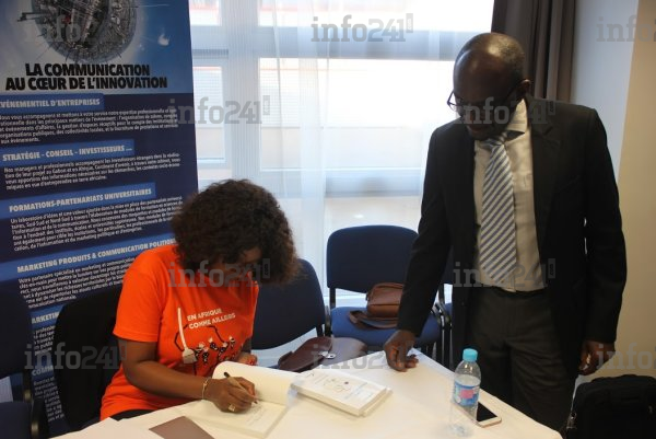 Dr Laurence Ndong dédicaçant son livre Gabon pourquoi j’accuse