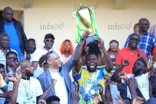 Les joueurs recevant le trophée de champion du Gabon, le 31 juillet à Libreville