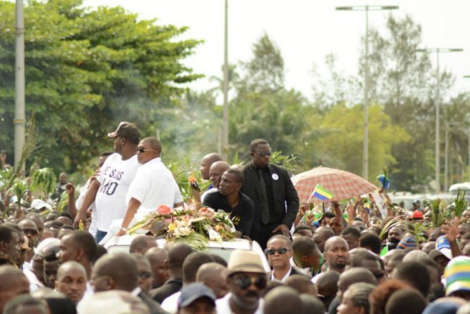 Ce mardi 28 avril restera à jamais dans les annales politiques du Gabon. Une marrée humaine a pris d’assaut l’aéroport Léon Mba de Libreville pour accueillir dans la dignité, la dépouille de l’opposant André Mba Obame décédé le 12 avril à Yaoundé. Un accueil en fanfare qui s’est poursuivi jusqu’en soirée au stade de Nzeng-ayong. Du jamais vu en terre gabonaise !