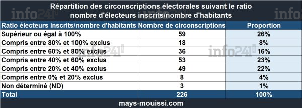 Cependant l’absence des données relatives à la population officielle des 3 localités précitées n’est pas de nature à remettre en cause notre analyse car n’étant pas significative. Le poids électoral cumulé de ces localités est inférieur à 0.38%.
