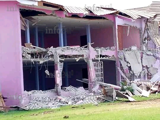 Avant d’ajouter : « Au cours de l’exécution de ladite mission, les policiers postés à l’entrée de la parcelle vont informer l’Officier Chef de dispositif de ce que le Maire du 5ème Arrondissement, s’opposant à l’action en cours, tente de rentrer sous l’engin loué à cet effet pour manifester son mécontentement ». « C’est ainsi qu’il va être maitrisé par les policiers assistant l’Huissier de justice et invité à s’asseoir sur un banc avant de dire au chef du dispositif qu’il doit repartir pour célébrer un mariage », poursuit le communiqué.