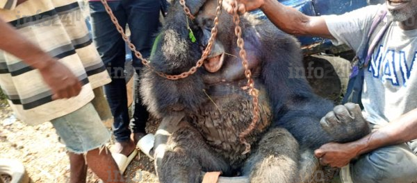 Les habitants du quartier Bavanga, dans le 2e arrondissement de Mouila (Ngounié, sud du Gabon), ont vécu pendant 24 heures dans la terreur. Un gorille semant la panique depuis jeudi a été abattu hier par un chasseur, mettant fin au trouble occasionné par la présence de cet animal près des habitations, loin de son environnement naturel.
