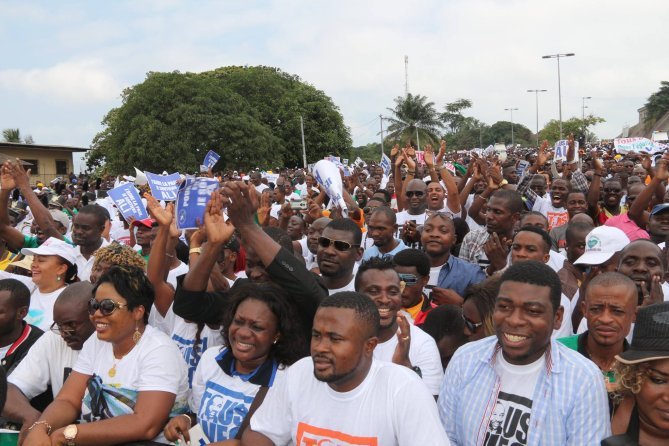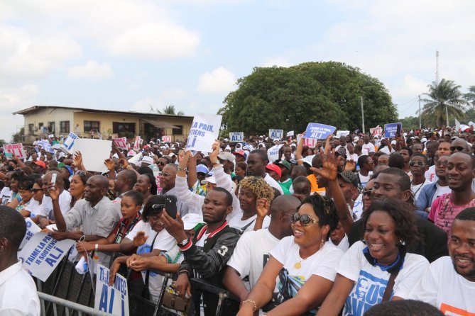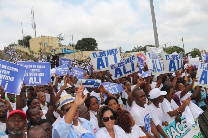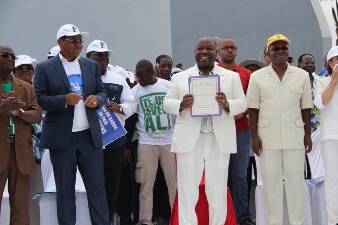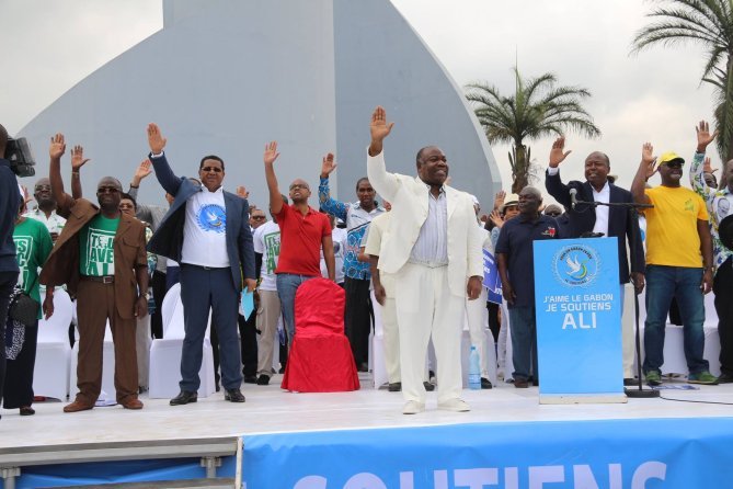 Quelques images du show politique d’Ali Bongo consécutif au dépôt officiel de sa candidature pour la présidentielle gabonaise d’août 2016. C’était samedi 9 juillet au rond-point de la Cité de la démocratie à Libreville.