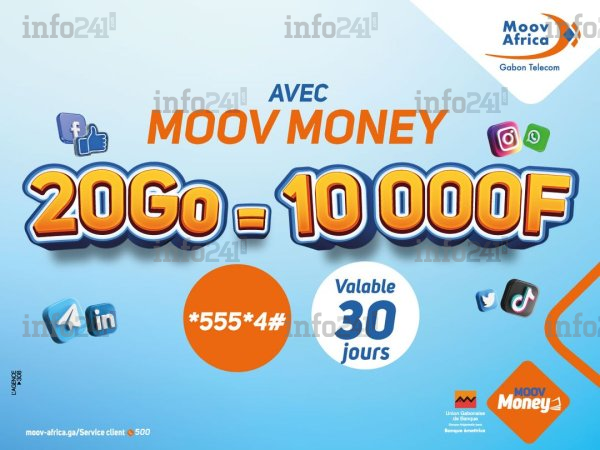 Une mobilisation qui a commencé à faire bouger les lignes. Ce dimanche, Moov Africa Gabon Telecom a annoncé bousculer ses prix en data. « 𝙀𝙣𝙘𝙤𝙧𝙚 𝙙𝙪 𝙣𝙤𝙪𝙫𝙚𝙖𝙪. La générosité continue avec Moov Africa ! Profitez de la nouvelle grille internet sur Moov Money : Achetez 𝐥𝐞 𝐟𝐨𝐫𝐟𝐚𝐢𝐭 𝐝𝐞 𝟏𝟎.𝟎𝟎𝟎𝐅 et bénéficiez de 𝟐𝟎𝐆𝐨 𝐯𝐚𝐥𝐚𝐛𝐥𝐞 𝟑𝟎 𝐣𝐨𝐮𝐫𝐬 », a annoncé tôt ce dimanche matin le leader de la téléphonie mobile au Gabon pour contenter ses clients.