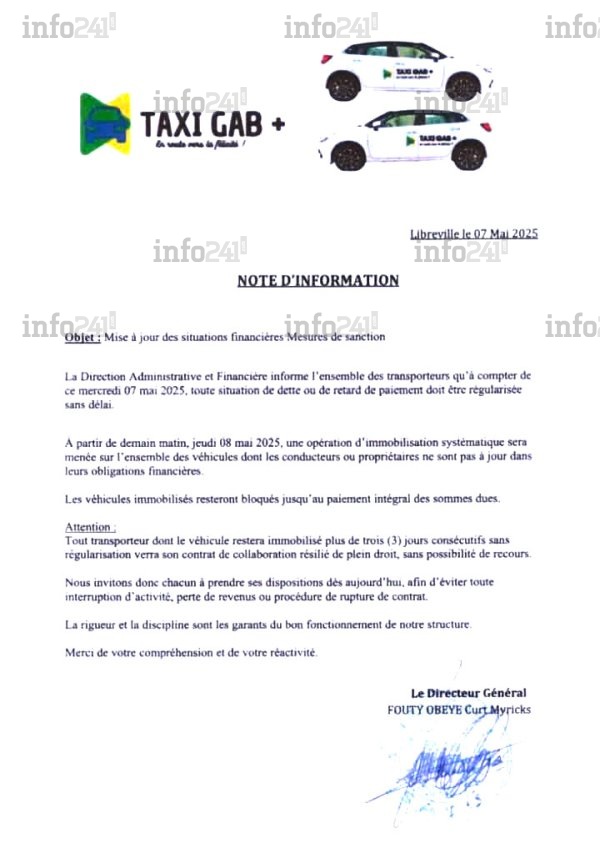 Le vernis du projet Taxi Gab+ se craquèle. Lancé en grande pompe par le CTRI sous la houlette du président Brice Clotaire Oligui Nguema pour moderniser le transport urbain et créer de l’emploi, le programme traverse une zone de turbulences. Dans un communiqué en date du 7 mai, la direction générale enjoint les conducteurs à régulariser sans délai leurs arriérés, sous peine de sanctions immédiates, incluant l’immobilisation des véhicules, voire la rupture pure et simple des contrats.