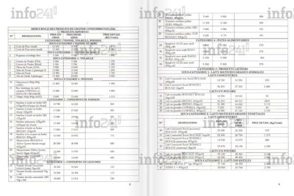 Vie chère au Gabon : le gouvernement dévoile sa nouvelle mercuriale des prix en vigueur jusqu’en août © 2026 D.R./Info241