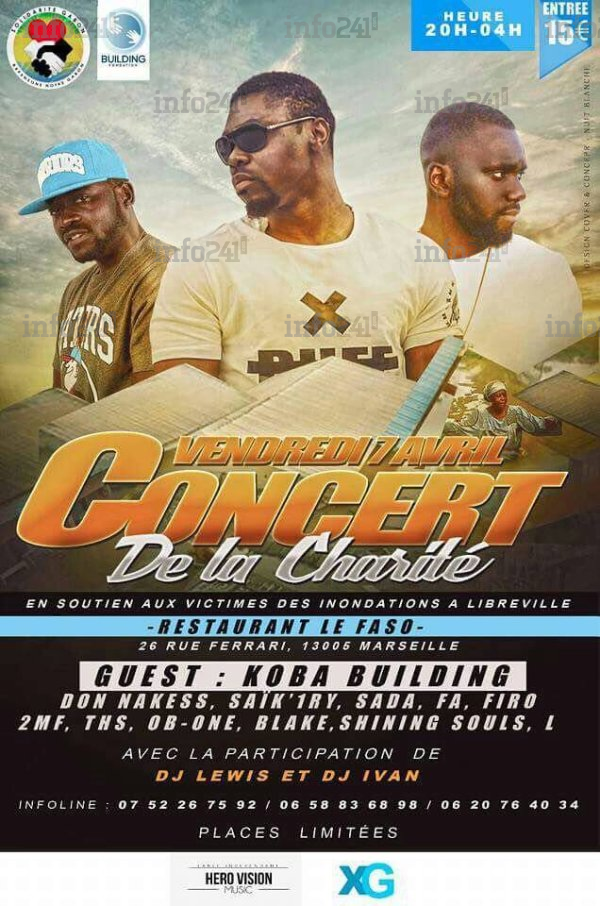 Solidarité Gabon, association à but non lucratif de Marseille organise un concert de la charité au sein de la capitale des Bouches-du-Rhône et de la région Provence-Alpes-Côte d’Azur, le vendredi 7 avril 2017 prochain, en collaboration avec Building Fondation pour soutenir les familles sinistrées des récentes inondations qui ont fait plusieurs victimes à Libreville. Le président de cette structure Kevyn Raphaël Sima s’est entretenu ce mardi avec Info241, partenaire de cet événement en affirmant que la totalité des fonds de cette action seront reversés aux riverains qui dans la nuit du 17 au 18 février 2017 ont vécu des nuits cauchemardesques.