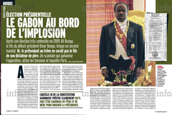 Avant d’indiquer que de « l’Élysée à Matignon, personne n’en n’ignore les dangers. Car évoquée encore à mots feutrés il y a sept ans, l’interrogation sur les origines de l’actuel président (gabonais) est désormais sur la place publique ». Cette affaire serait ainsi « une bombe atomique contre Ali Bongo » dont recourrait actuellement l’opposition gabonaise.