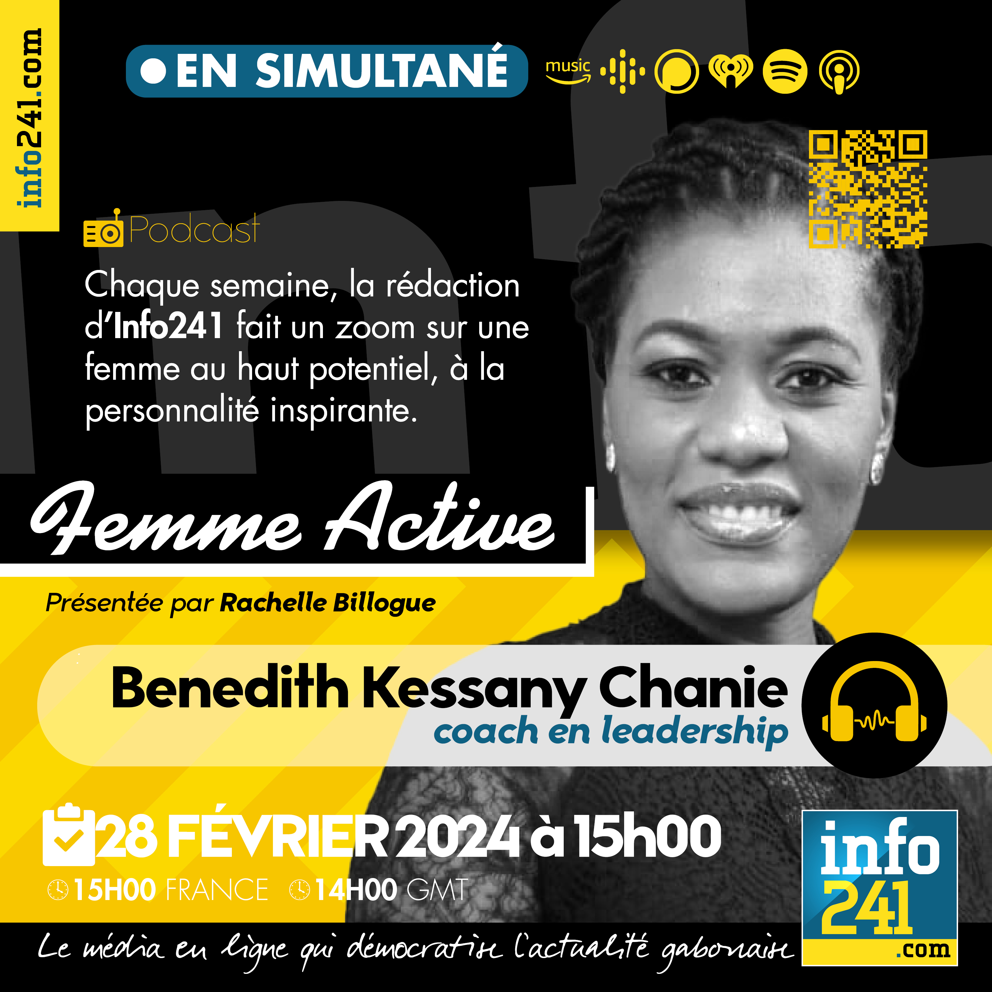 « Femme active » #6, l’émission qui fait un zoom chaque semaine sur une femme au haut potentiel et à la personnalité inspirante. Notre invitée est Benedith Kessany Chanie, coach certifiée en leadership et développement personnel. Elle est la fondatrice du Cabinet BK Consulting qui fait essentiellement dans la formation en management, leadership et développement personnel. Elle officie au Gabon depuis 2016. Nous évoquerons avec elle son parcours et ses secrets de réussite.