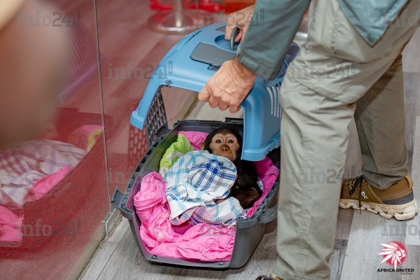 À son arrivée, le primate a été confié à la Fondation Lékédi, structure de référence dans la conservation de la biodiversité. Il y a été accueilli par le Dr Morane Bahere, cheffe vétérinaire, et par le directeur, Éric Willaume. L’objectif : lui offrir un suivi adapté et maximiser ses chances de survie et, à terme, de réintégration dans un milieu protégé.