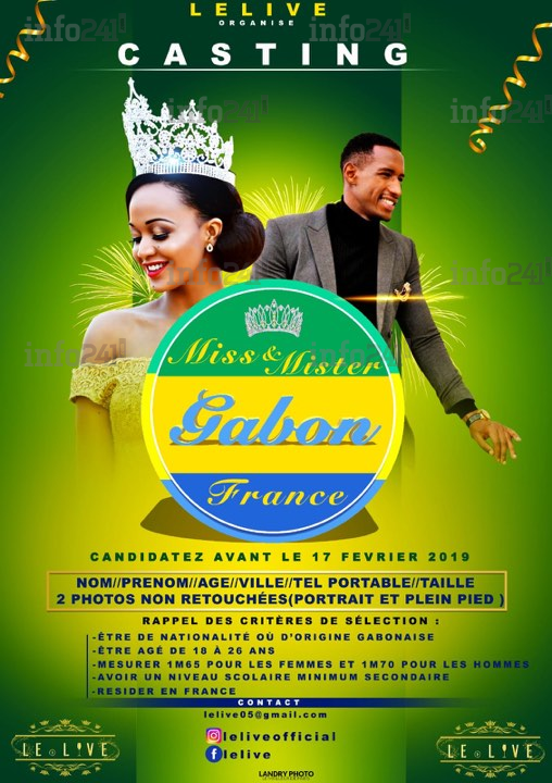Dans un communiqué de presse parvenu ce samedi à la rédaction d’Info241, l’association L€live, organisatrice de cet événement culturel gabonais réalisé en France précise qu’en mai prochain à partir de 20h se déroulera l’élection de Miss et Mister Gabon France 2019. Il faut noter que le casting des candidats est actuellement en cours et ce, jusqu’au 17 février 2019.