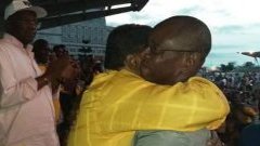 Chaude accolade entre Jean Ping et Léon Paul Ngoulakia hier soir à Franceville, lors du meeting de l’opposition unie.... 6:04 p.m.