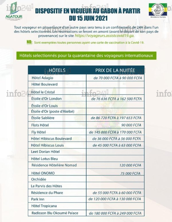 Le Gabon impose désormais une quarantaine obligatoire de 24h pour entrer sur son sol © 2021 D.R./Info241