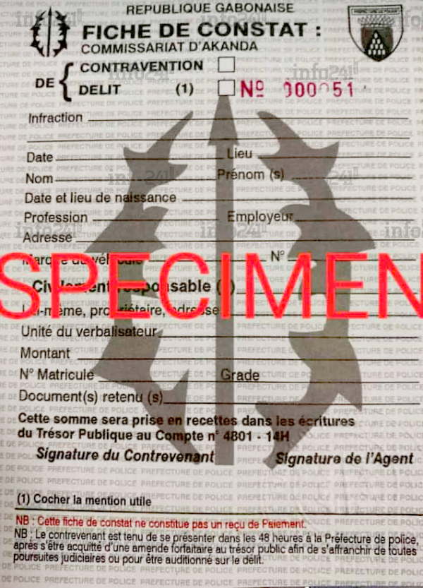 En effet, la préfecture de police indique dans un communiqué parvenu à la rédaction d’Info241 : « En vue de lutter contre le racket, la Préfecture de Police de Libreville informe les populations de la mise en place de nouvelles fiches de Constat de contravention identifiables selon l’Unité de Police verbalisatrice ».