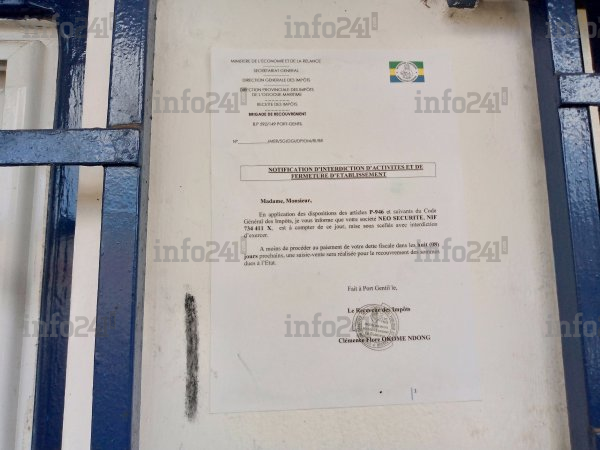 Malheureusement l’arrêt des activités dans cette entreprise n’a jamais fait l’objet d’une quelconque note de service officielle émanant du DG. Le pire dans tout ça, la direction générale des Impôts, antenne Ogooué-Maritime, est allée mettre sous scellés cette structure avec interdiction d’exercer jusqu’à nouvel ordre. Tout ceci en application des dispositions de l’article P-946 et suivants du Code général des impôts. La DGI de l’Ogooué-Maritime a annoncé qu’à moins de procéder au paiement de cette dette, une saisie-vente sera réalisée pour le recouvrement des sommes dues à l’État.