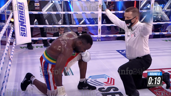 Un combat mené de bout en bout par le polonais jusqu’au 6e round où à moins de 20 secondes du gong, le boxeur gabonais n’aura pas trouvé les moyens de poursuivre le combat. Malmené, Taylor Mabika qui se serait blessé à la main droite, a dû se résoudre à poser un pied à terre pour concéder sa défaite.