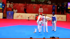 Le combat de Taekwondo entre le Gabonais Anthony OBAME et le Burkinabé Aboubacar DRABO dans la catégorie des +87 kg.... 6:04 p.m.